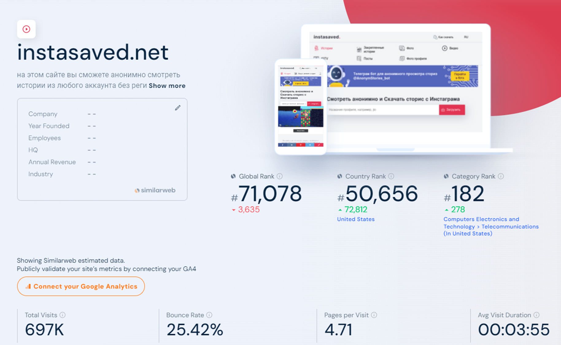 인스타그램 스토리 몰래보기 TOP10 사이트 트래픽 비교 (2024.4월 기준)